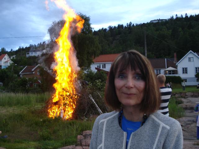 4th cousin RønnaugCousin Rønnaug with St Johns Day (midsummer) fire in Svelvik