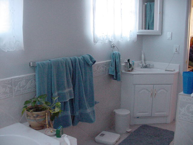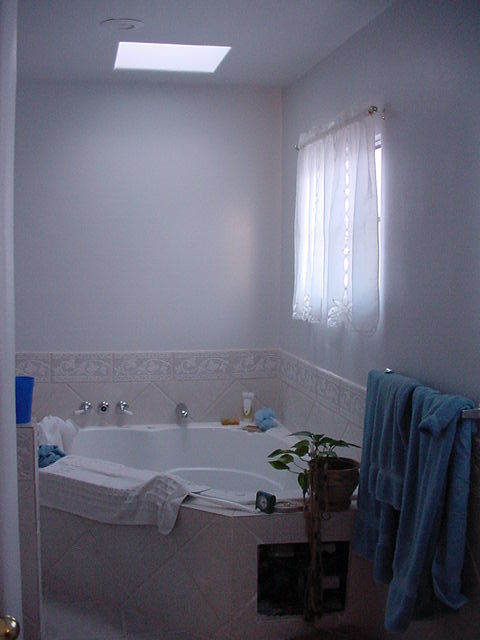| We broke through the wall and added the hall bathroom to the master bathroom. We put a jacuzzi for two in most of that new space. We repainted and tiled. The new laundrey room/closet is to the left of the middle photo behind folding doors. | ||||