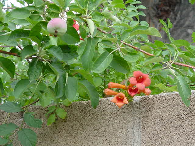 Trumpet Vine and Apple Tree